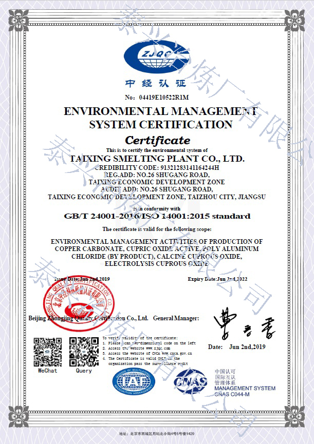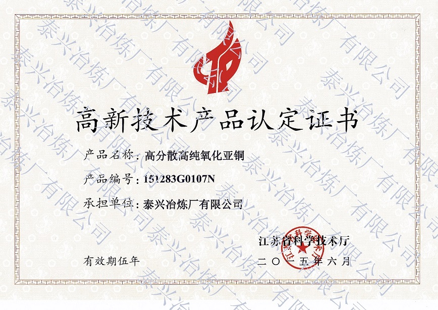 是我國《工業(yè)氧化亞銅》、《工業(yè)堿式碳酸銅》、《工業(yè)活性氧化銅》行業(yè)標(biāo)準(zhǔn)的起草單位